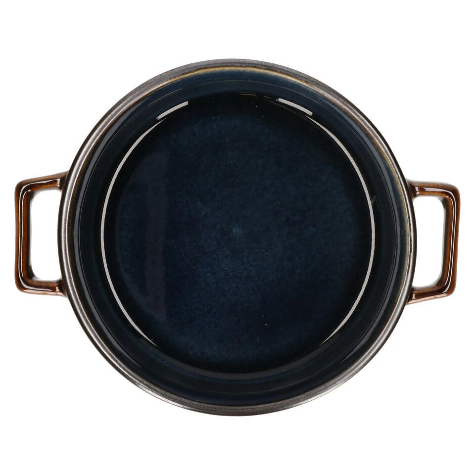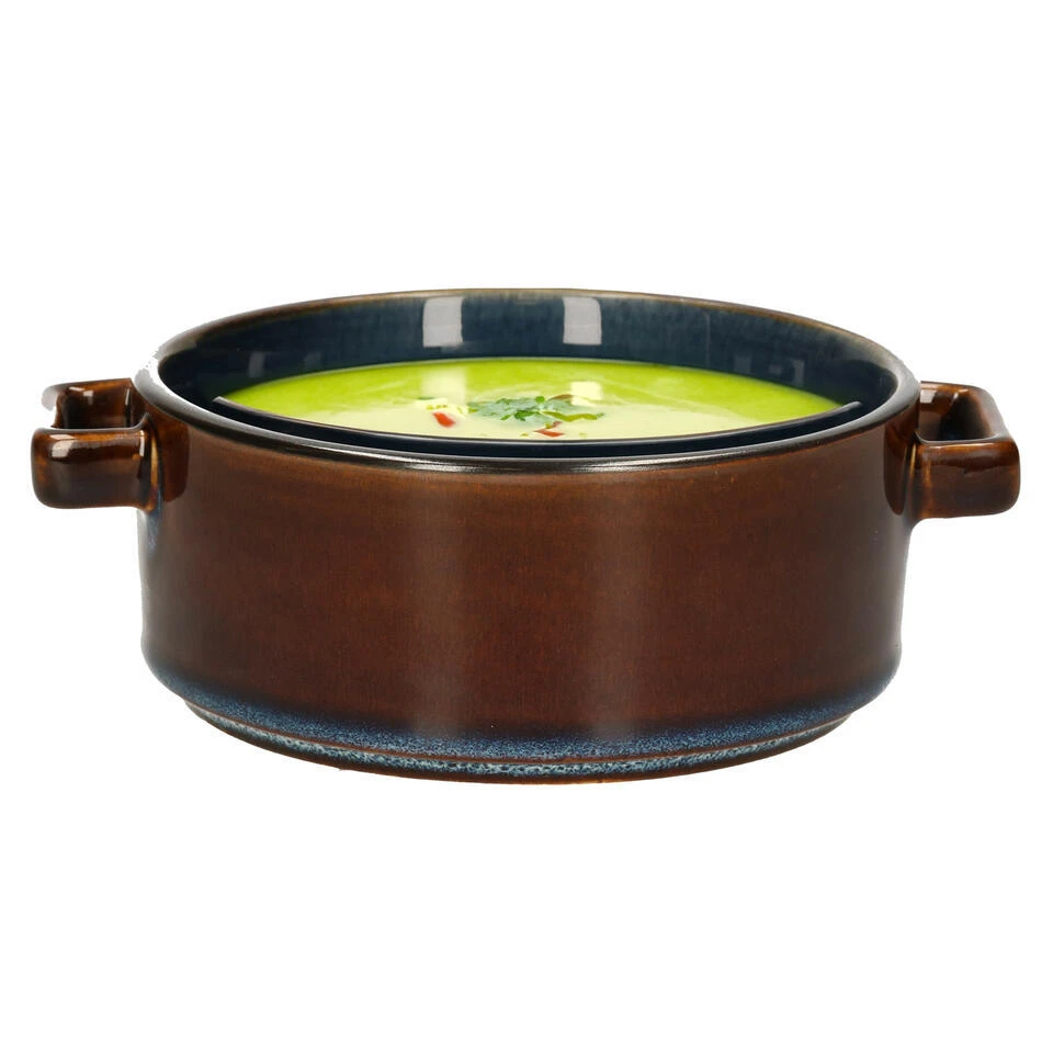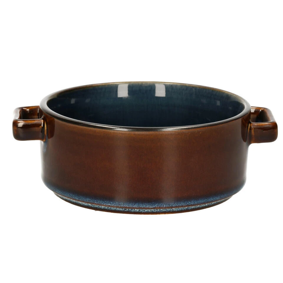 Kommetjes/soepkommen/schaaltjes voor o.a. dessert, soep en ontbijt. Gemaakt van stevig geglazuurd luxe porselein in de kleuren blauw/bruin. Afmeting: D13 x 5.5 cm/450 ML. Handige stapelbare kommetjes voor in elk huishouden. Ontbijtschaaltjes, soepkommen. Merk: Cosy & Trendy.