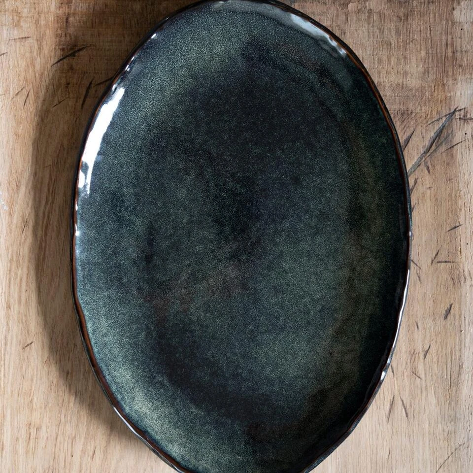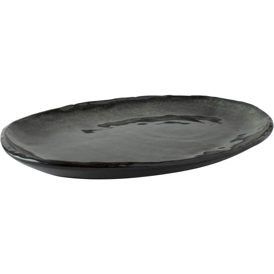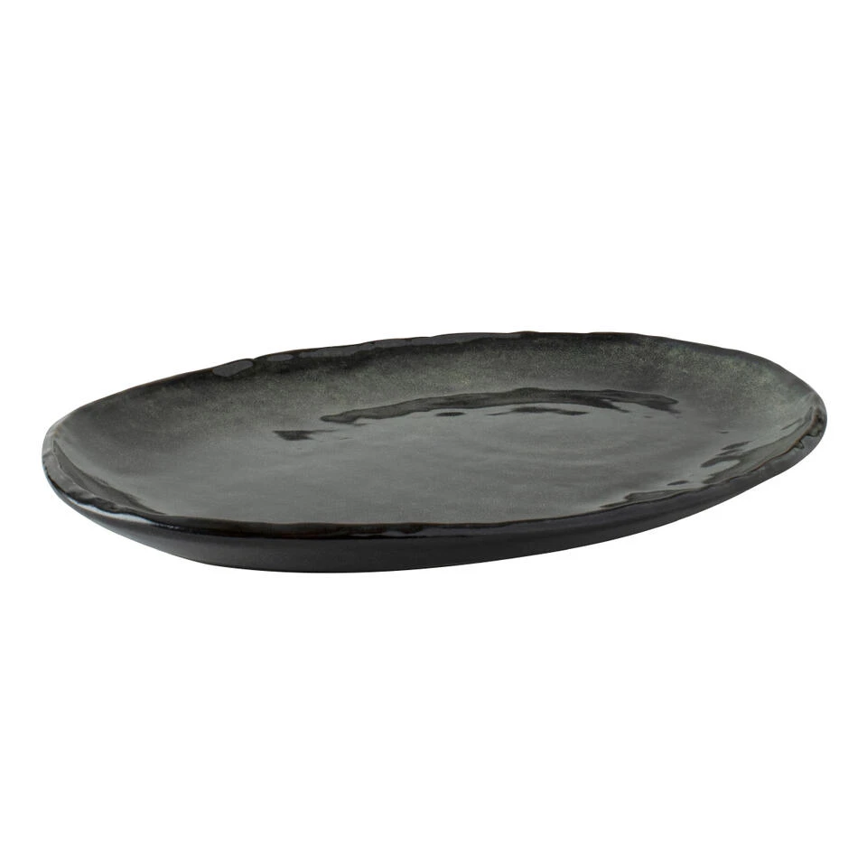 Dit groene, ovale bord komt uit de stoneware verzameling van Dutch Rose Amsterdam. De borden uit deze servieslijn zijn gemaakt van hoogwaardig stoneware, waardoor ze aan warme en natuurlijke uitstraling hebben. Daarnaast hebben ze ieder hun eigen rustieke look waardoor het natuurlijke aspect van de borden nog beter naar voren komt. Het bord heeft een afmeting van 40 bij 28 centimeter is vaatwasserbestendig
