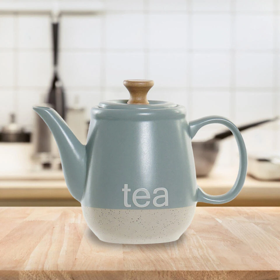 Theepot Ceylon in de kleur blauw/beige. Bereid thee met deze mooie keramiek theepot. Mooie stijlvolle pot met handvat houten knop. Vaatwasser bestendig, maar afspoelen is beter. Inhoud: ca. 1000 ml. Afmeting: ca 23 x 12 x 16 cm. Materiaal: keramiek/hout.