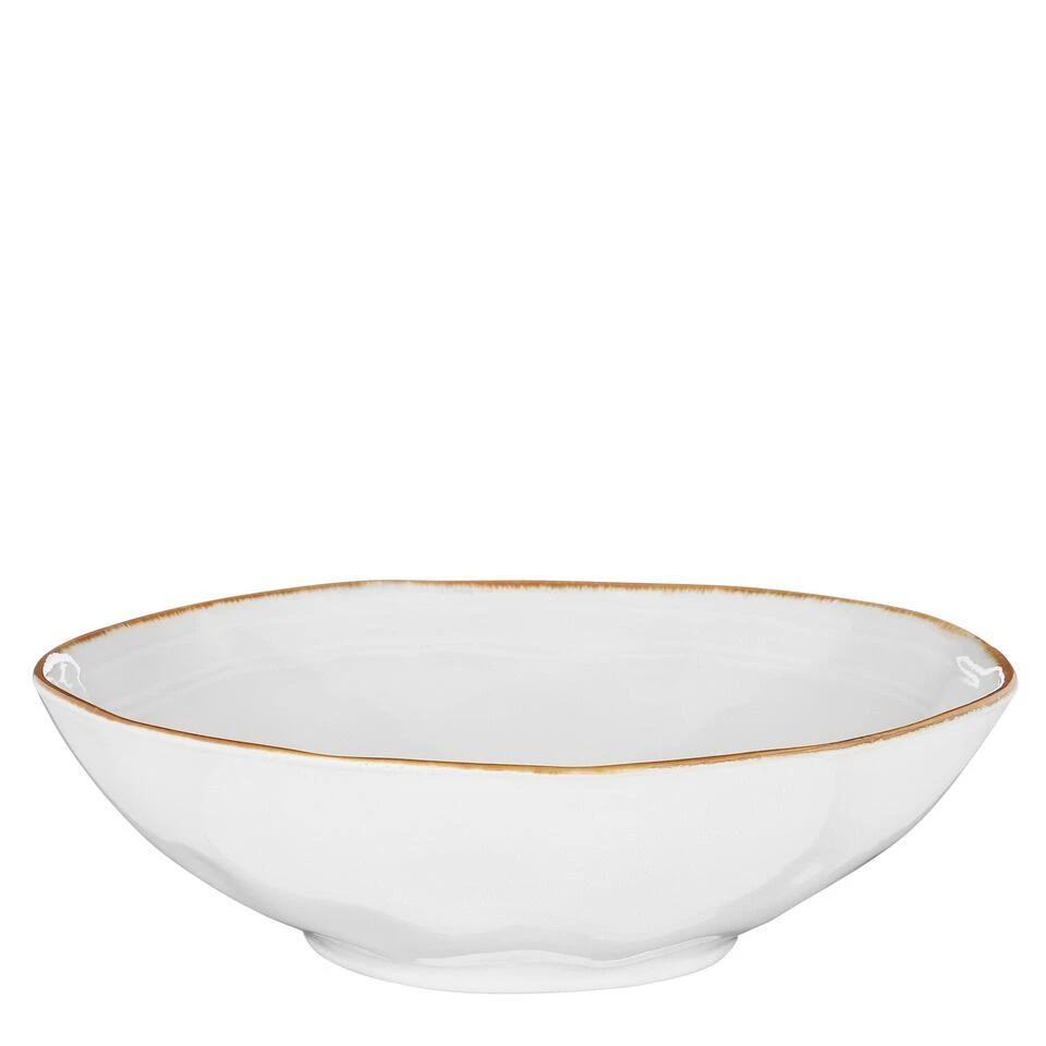 Rustiek en robuust, zo kan het Tabo servies van Mica Decorations het beste worden omschreven. Geen wit porselein met saaie volmaakte lijnen, maar handgemaakte producten van keramiek in neutrale tinten. Elk met een eigen, authentieke look die past bij puur genieten. Nu heeft deze keramieken schaal van H9 x Ø30,5 cm ook een witte kleur, maar dan met een bruingekleurd randje en een ambachtelijke uitstraling. Mooi in elk interieur en voor van alles te gebruiken! Bijvoorbeeld om een salade in te serveren, of als fruitschaal. Het diepe bord is hittebestendig tot 180 °C en kan zowel in de magnetron als in de vaatwasser worden gezet. Combineer dit product met andere items uit de Tabo serie en maak het servies compleet.