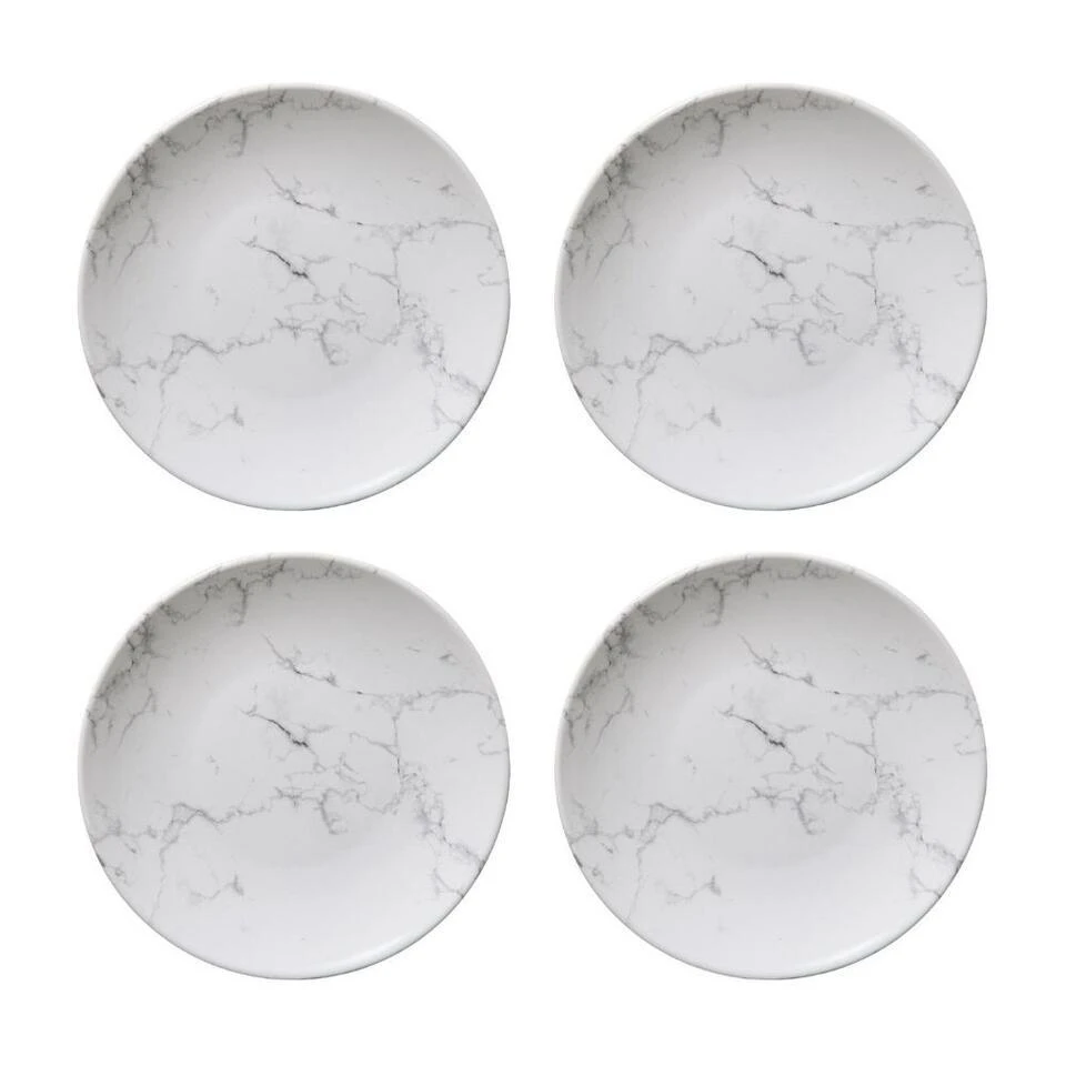 Deze Orange85 gebaksbordjes wit zijn perfect voor het serveren van gebak en andere lekkernijen. Door de witte marmer look hebben de bordjes een chique uitstraling. De borden worden verkocht per vier stuks en zijn gemaakt van aardewerk. De diameter van de borden is 19 cm. Eventueel zijn de bordjes ook te gebruiken als kleine ontbijtborden.