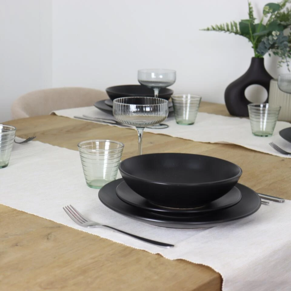 Geef je tafel een moderne en chique uitstraling met de OTIX 12-delige Serviesset. Deze set voor 6 personen bevat 6 matzwarte ontbijtborden (21 cm) en 6 matzwarte dinerborden (26,5 cm), perfect voor het serveren van je favoriete maaltijden. Gemaakt van hoogwaardig aardewerk, biedt de IVY serviesset een strakke, eigentijdse uitstraling die gemakkelijk te combineren is met verschillende tafelsettings.