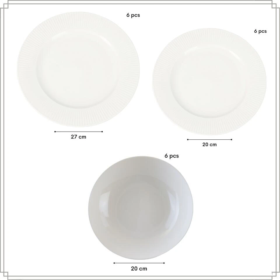 De OTIX Serviesset LUNA 18-delig is een complete en stijlvolle set voor 6 personen, ideaal voor dagelijks gebruik of feestelijke gelegenheden. Gemaakt van hoogwaardig wit porselein, combineert deze set elegantie met functionaliteit.