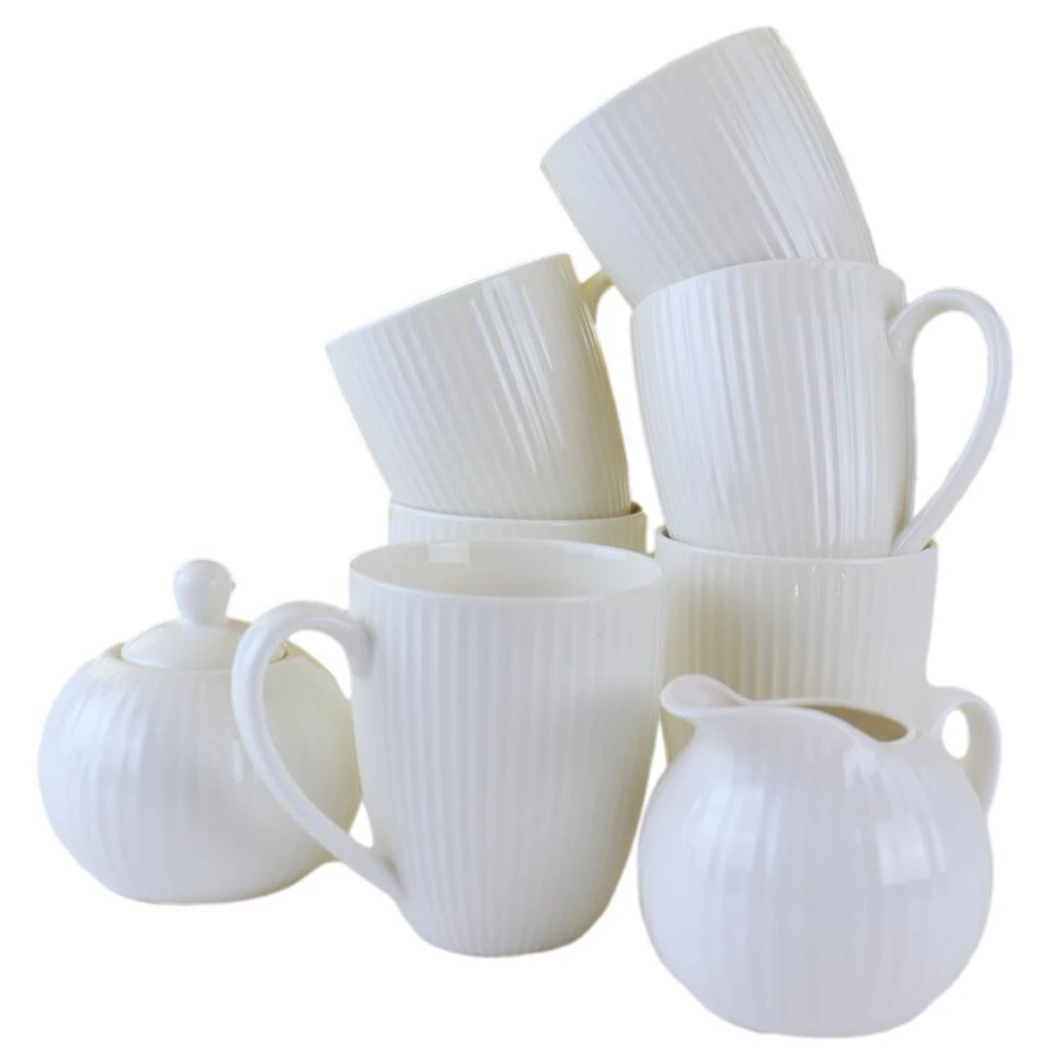 De OTIX Serviesset LUNA 8-delig is een elegante en complete set voor koffieliefhebbers. Deze set bevat 6 koffiekopjes met oor, een melkkannetje en een suikerpot met deksel, allemaal vervaardigd van hoogwaardig wit porselein. Ideaal voor een stijlvol koffiemoment, thuis of met gasten.