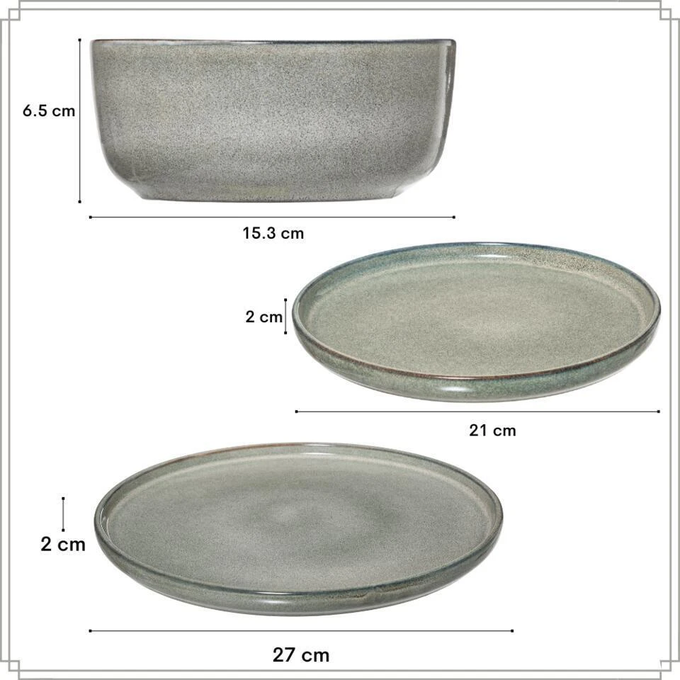 De OTIX Servies Set biedt een perfecte combinatie van stijl en functionaliteit voor elke keuken. Deze set bevat zes soepkommen (600 ml), zes ontbijtborden (21 cm), en zes dinerborden (27 cm), allemaal vervaardigd uit hoogwaardig grijs aardewerk.